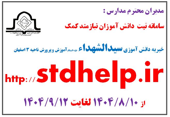 ثبت مشخصات دانش اموزان نيازمند در سامانه خيريه دانش آموزي سيد الشهداء عليه السلام با تشکر از مدیران و معاونین و کارکنان مدارس آموزش و پرورش ناحیه ۳ که در نهایت اخلاص صبر و ادب در شناسایی و کمک به دانش آموزان نیازمند خیریه دانش آموزی سید الشهداء علیه السلام ناحیه 3 را یاری می رسانند